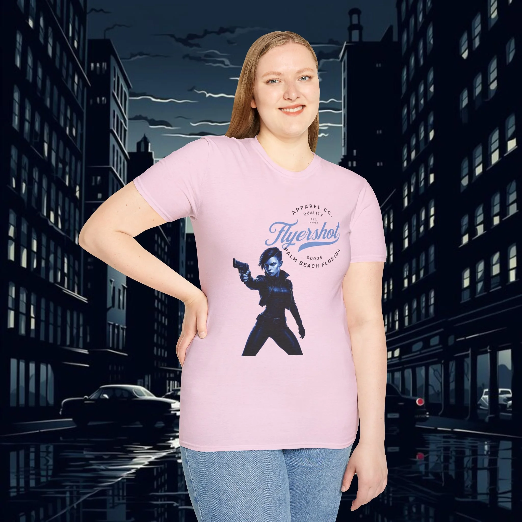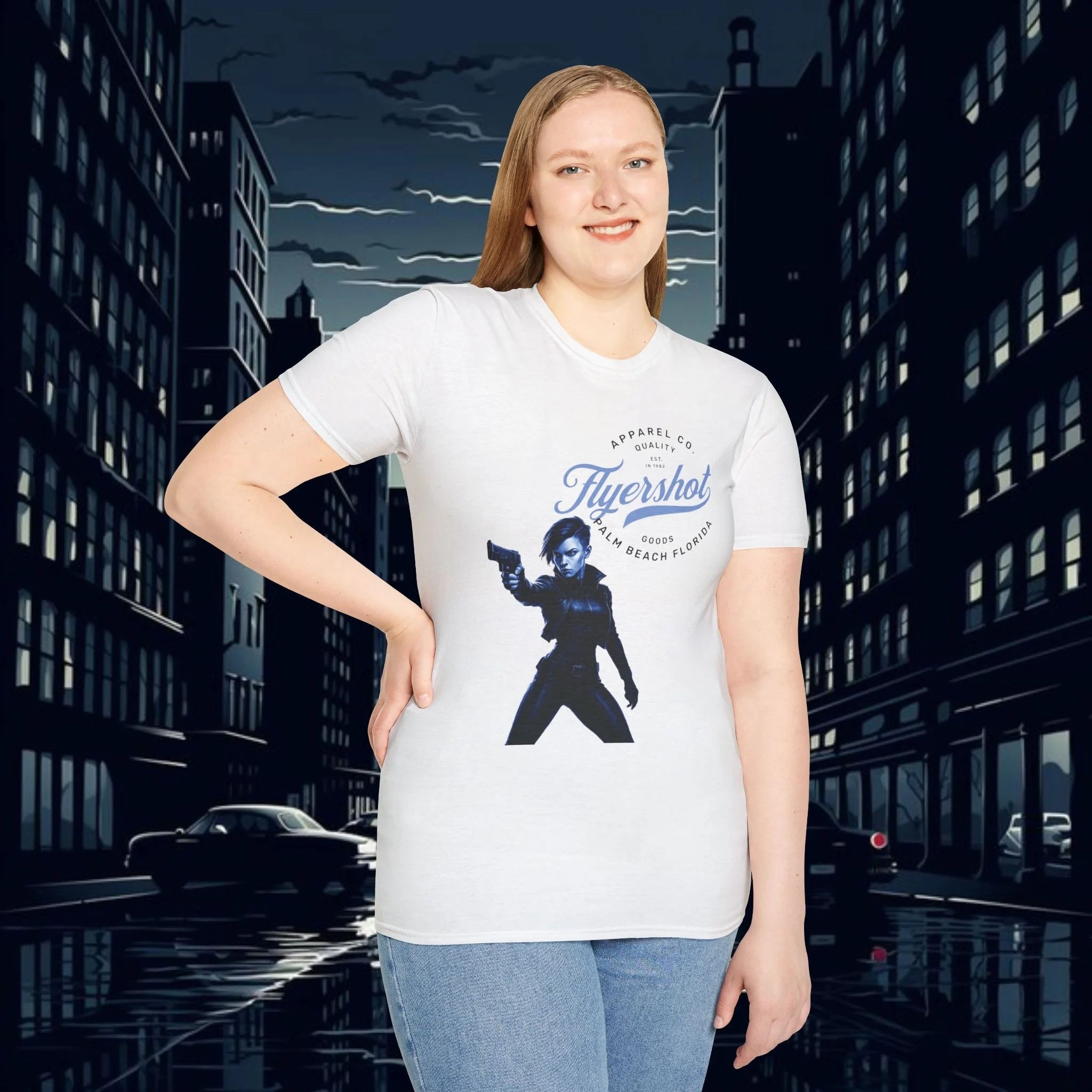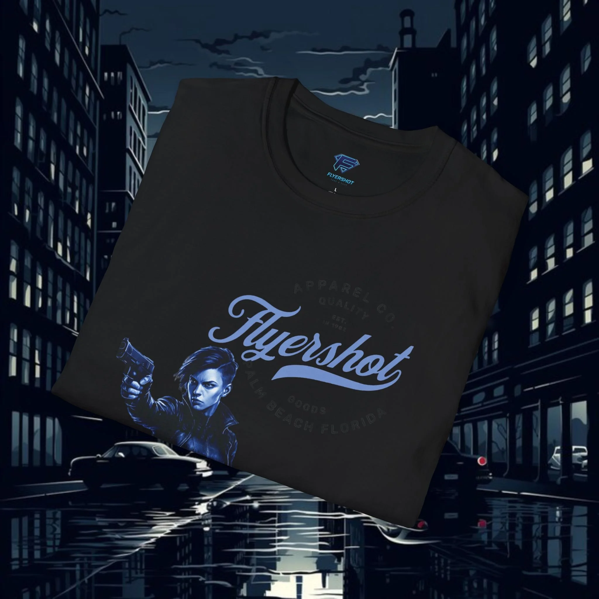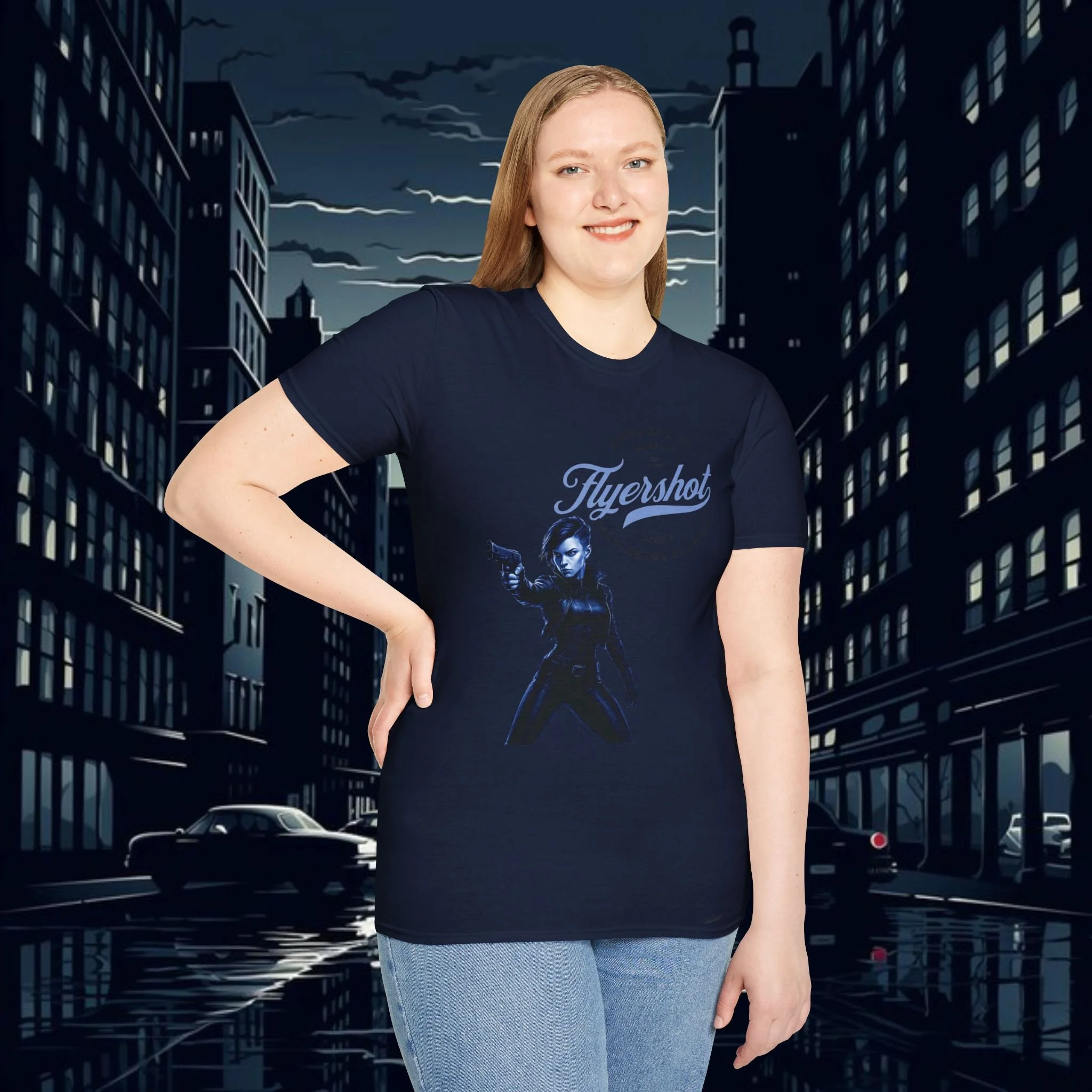Flyershot Graphic T-Shirt — Retro Action Shooter Design