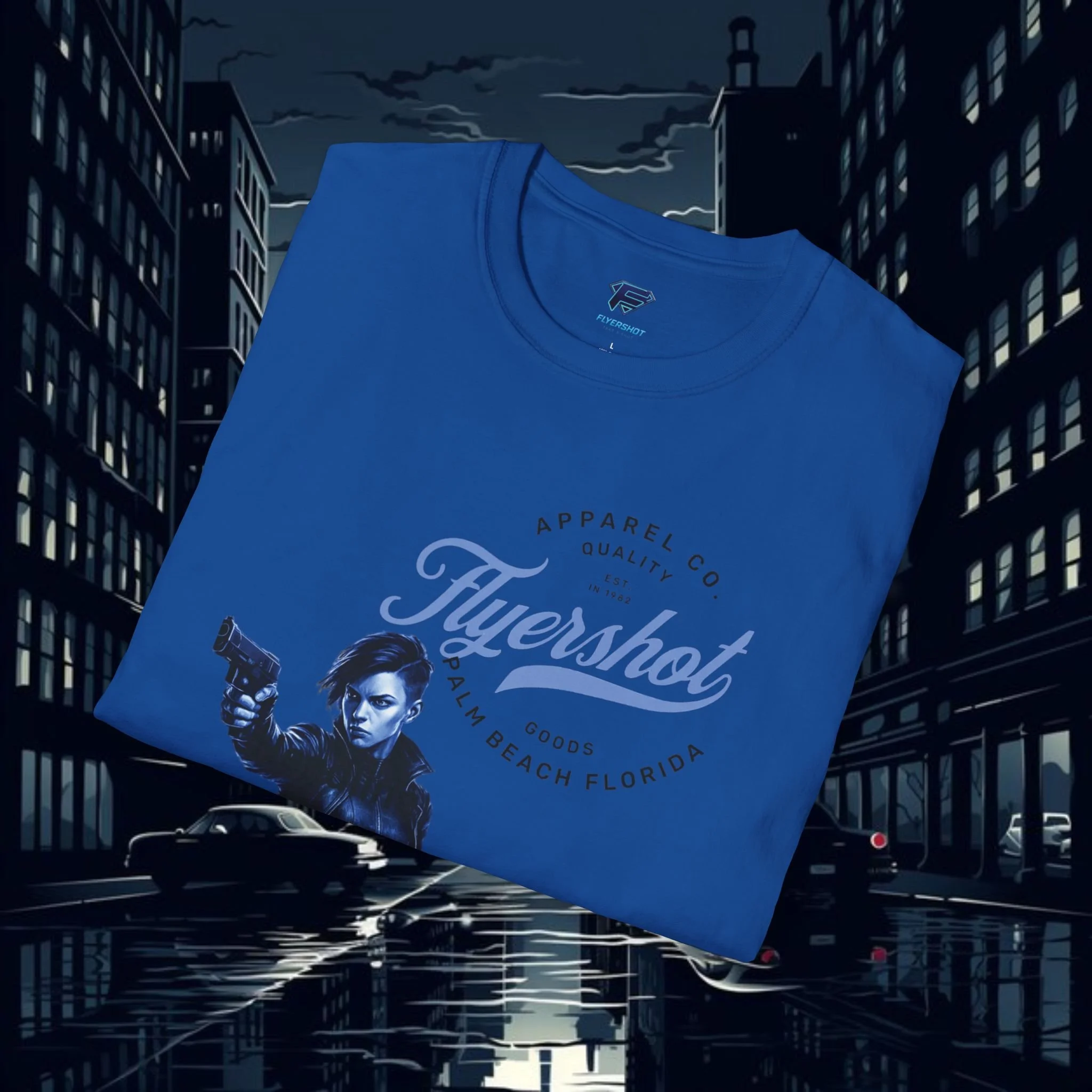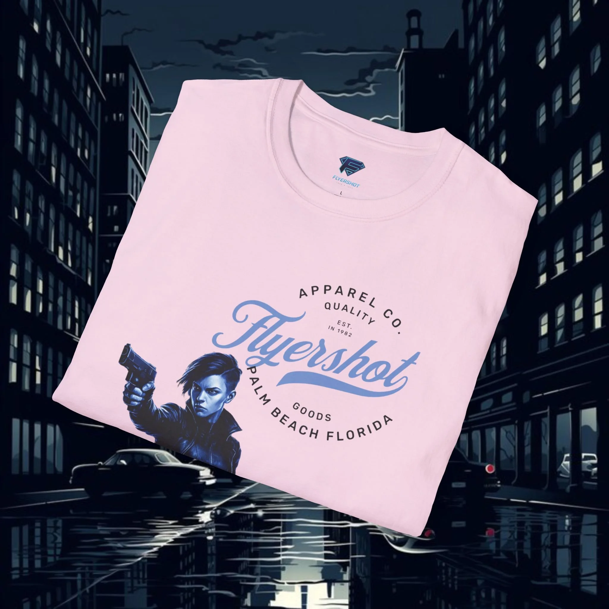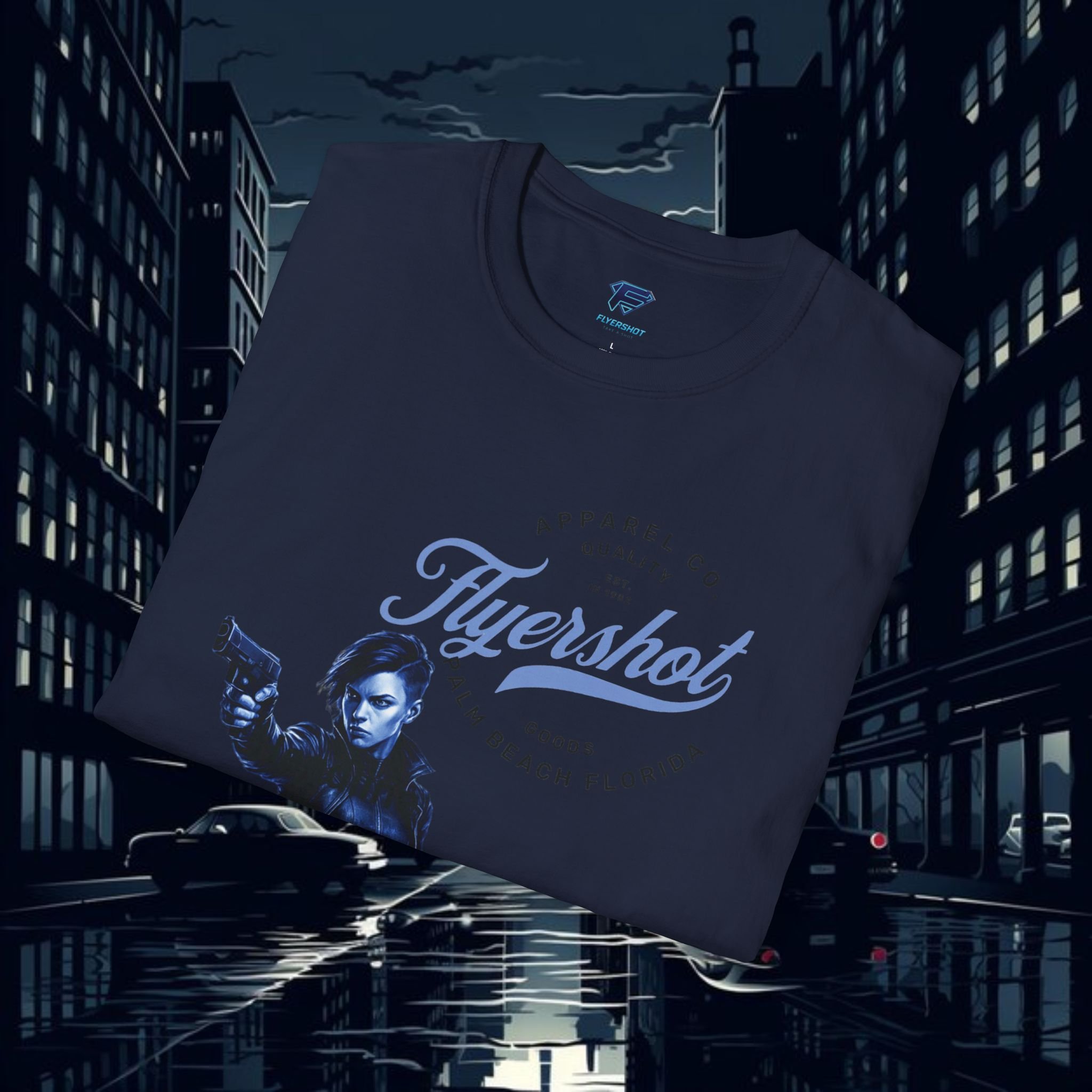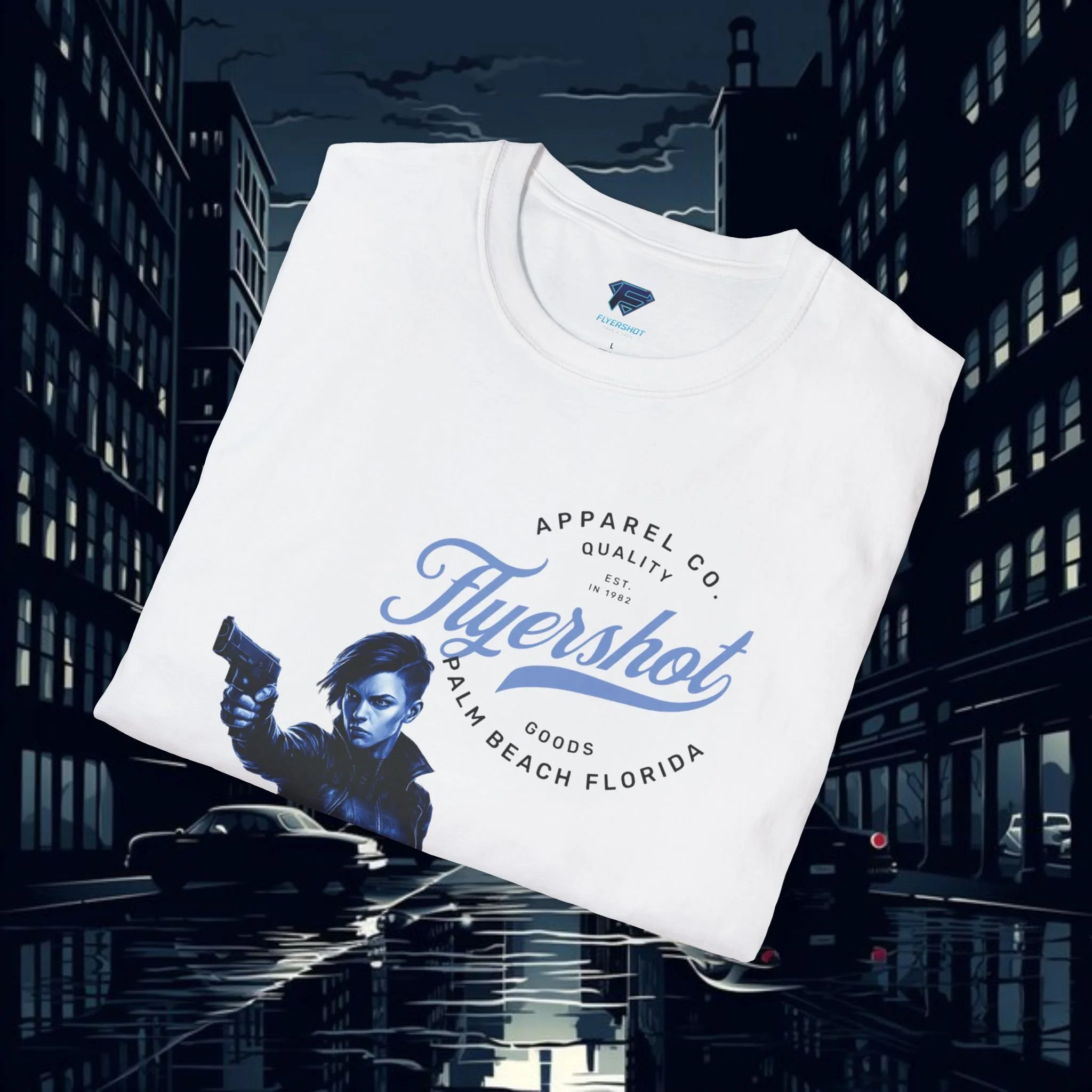 Flyershot Graphic T-Shirt — Retro Action Shooter Design