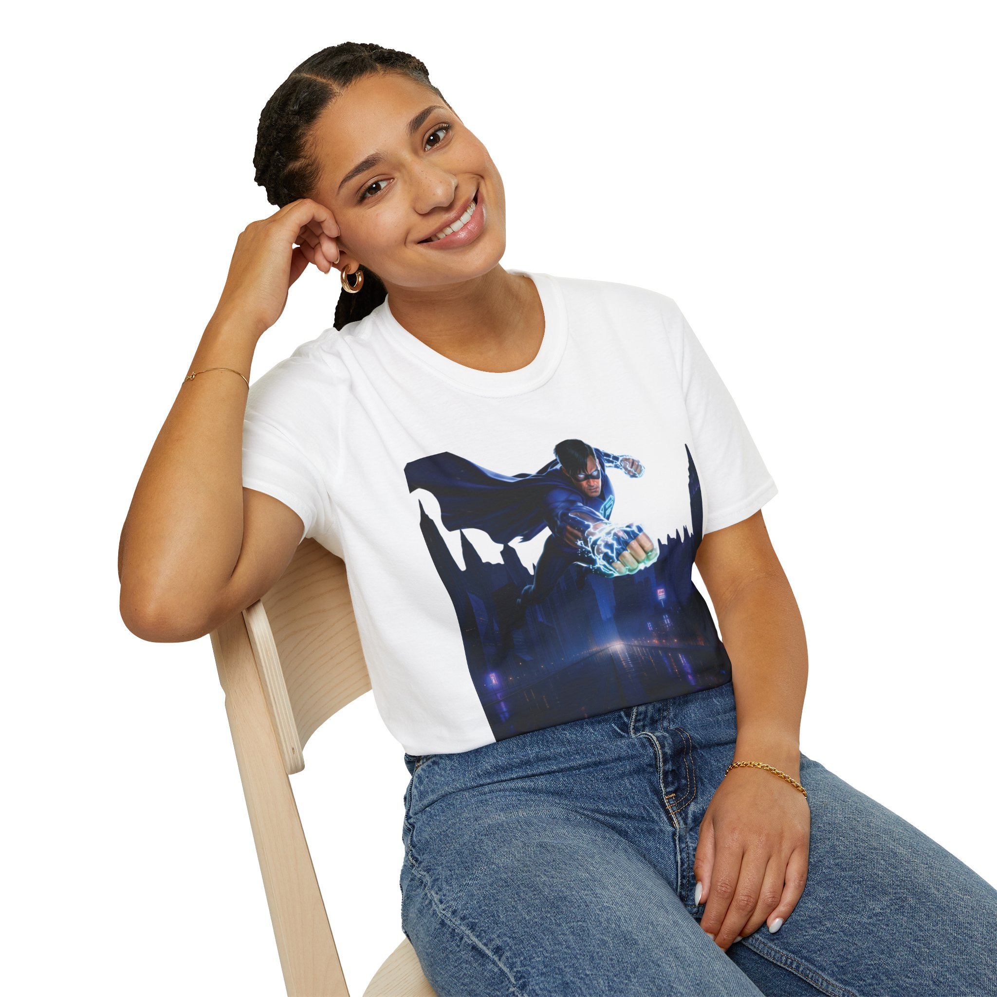 This lightweight crew-neck tee carries a bold, cinematic energy. A dynamic hero image dominates the front — motion, light, and a city-night backdrop — while a cool, emblem-style logo rests on the upper back. Wear it when you want to channel urban adventure: fast-paced evenings, late-night meetups, or casual streams and conventions. The soft, smooth ring-spun cotton drapes cleanly and holds printed detail beautifully, letting the artwork keep its sharp contrast and color depth. It layers easily under a jacket or stands alone as a statement piece that reads both familiar and modern.