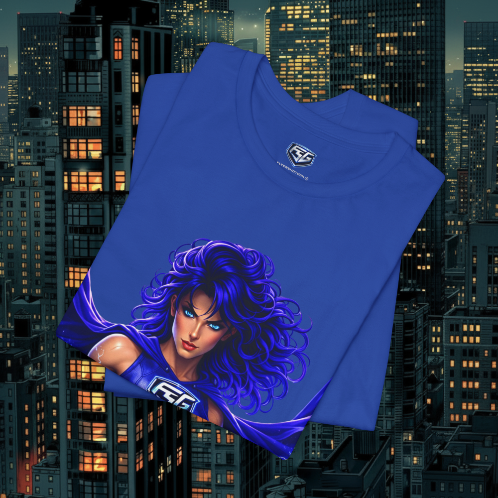 Step into the energy of a rising legend with this bold FlyershotGirl® Lightning Power Tee — where strength, style, and electricity collide. Featuring a fierce, blue-electric heroine surrounded by intense lightning bursts, this design captures the moment power awakens.